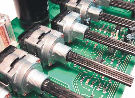 Abb.: Alle Cinchbuchsen  sind vergoldet. Die Potientiometer besitzen eine Vollkapselung aus Aluminium-Druckguss. Zugleich sorgt eine feinzahnige Rasterung für einen angenehmen Bedienungskomfort.   |